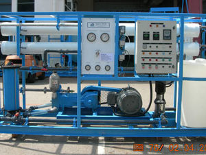 Trong các hệ thống RO của Water Water, áp lực được áp dụng cho nước biển, buộc nước ngọt qua màng bán thấm trong khi hầu hết các muối, vi khuẩn, chất keo và các tạp chất khác đều bị màng lọc loại bỏ.